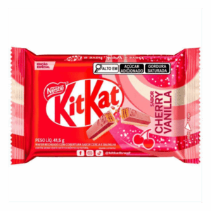 O novo KitKat Cherry Vanilla chegou ao Brasil em uma edição limitada, trazendo uma combinação irresistível de wafer crocante, chocolate, baunilha e cereja. Com 41,5g,