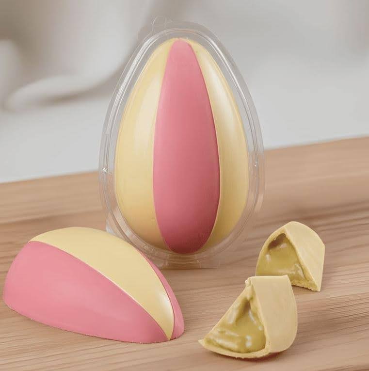 A Páscoa é sempre um momento de inovação na confeitaria, e a forma fatia nº3716 da BWB chegou para transformar a maneira como produzimos ovos de chocolate. Diferente do tradicional ovo inteiro, essa forma permite criar fatias perfeitas, ideais para sobremesas individuais, lembrancinhas ou até para montar sua versão de ovos com recheios diferentes com acabamento profissional.
