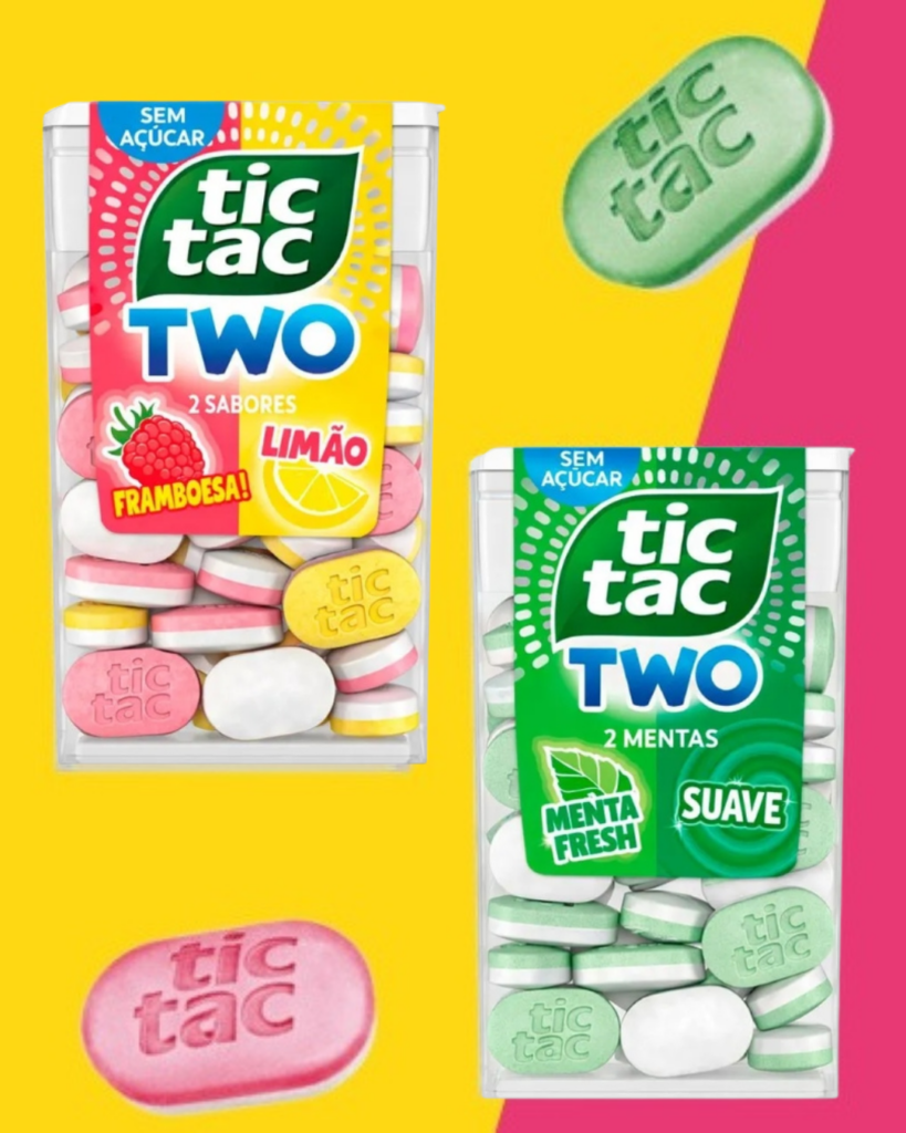 Chegou o Tic Tac Two, o novo lançamento que veio para surpreender! Agora em um formato maior, com dois sabores em cada pastilha e zero açúcar, ele entrega uma experiência intensa e equilibrada a cada momento. Oferece uma sensação diferenciada, unindo sabores complementares em uma única pastilha. O resultado é uma explosão de frescor que dura mais tempo e surpreende pelo equilíbrio entre intensidade e suavidade.